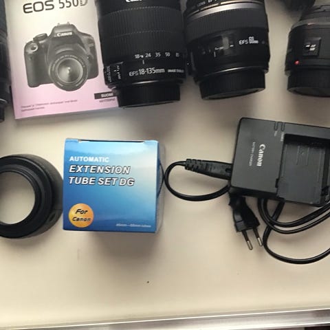 Kamera on täysin toimiva. Myös kaikki linssit ehjiä ja hyvässä kunnossa. Linsseissä tai kameran näytössä ei naarmuja.