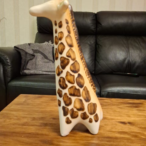 Taisto Kaasisen Arabialle suunnittelema käsinmaalattu kirahvi 1950-luvulta.