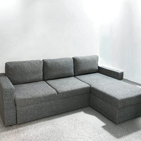 Kuvaus Jysk-sivustolla: "3-istuttava kangassohva. Sohva on helppo muuttaa sängyksi. Istuinpehmuste pussijousilla ja vaahtomuovipehmusteella. Selkäpehmuste vaahtomuovia. Säilytystilalla. Voi peilikääntää. Makuuala 149x195 cm. L241 x K86 x S89/163 cm"