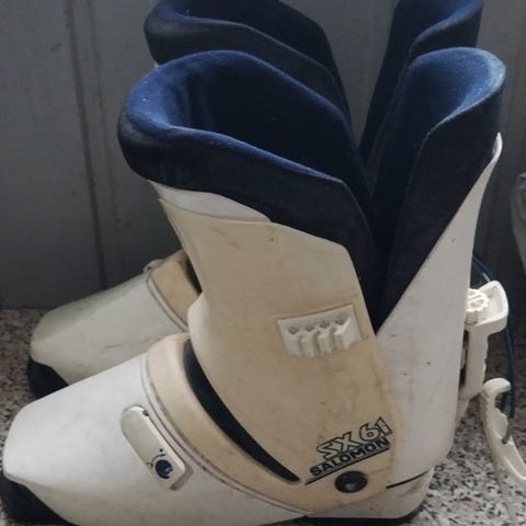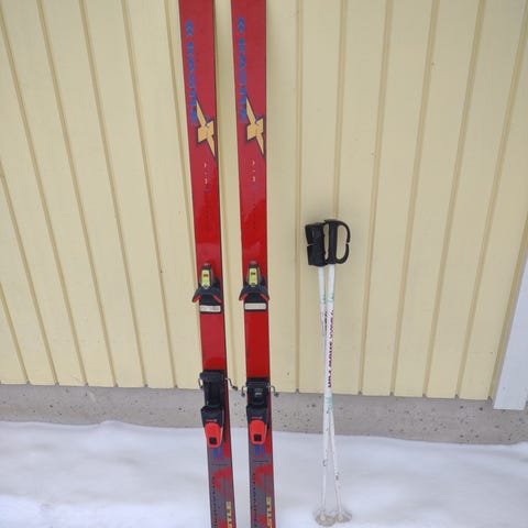 Hyvin palvellut setti seuraavalle aloittelijalle. Sukset 100 cm, monot 280, kypärä 56/57.