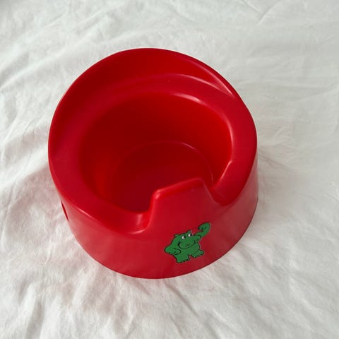 Vanha, retrohenkinen nuken potta 80-luvulta. Materiaali muovia, väri sininen, edessä hylje-tarra. Pohjan halkaisija n. 15 cm, sisäosan halkaisija n. 9 cm ja reunan korkeus n. 5,5 cm. On siistissä kunnossa. Hinta 5€. Nouto Espoo (esim. Kauklahti / Lippulaiva). Voin myös postittaa, jolloin postituskulut lisätään hintaan. Tori-diili tai tavallliset kaupat.