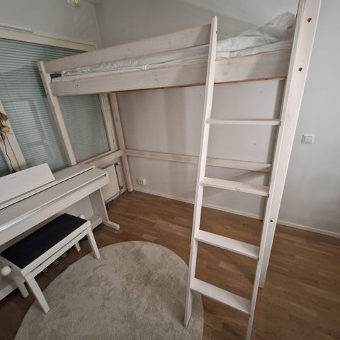 Myydään Ikea stuva, nykyään småstad, parvisänky. Alhaalla hylly, kaappi, pöytä ja laatikosto. Kaapin ovet ja laatikoston etuosat ovat siniset, muuten valkoinen.Muutamia tarran jälkiä maalattu valkoisella maalilla piiloon, muuten hyvä kuntoinen. Nyt jo osittain purettu. Tarjoa hintaa!