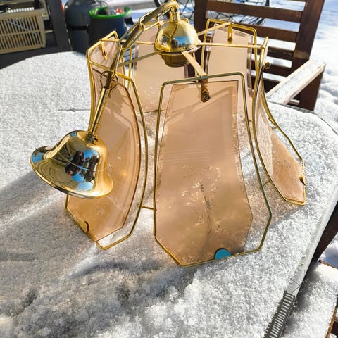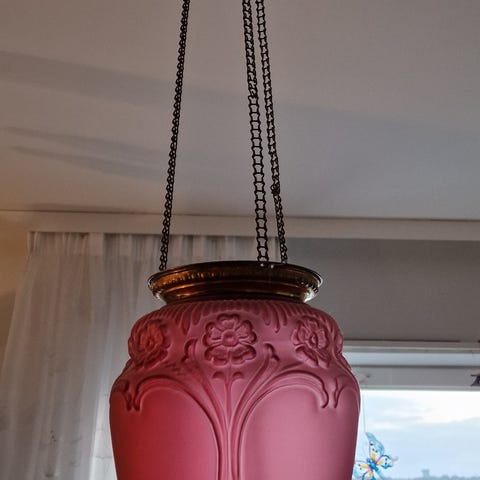 Vanha mosaikki karrovalaisin/kynttilålyhty. Hämärässä kuvassa kuvun sisällä