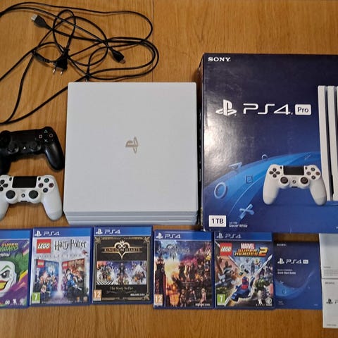 PS4 Pro 1 Tt (CUH-7116B) + 1 ohjain + kaapelit + FIFA 17 + The Last of Us