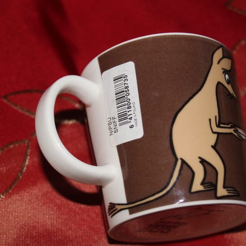 Myydään tarraton muumimuki Nipsu ruskea. Muki hyvässä kunnossa.