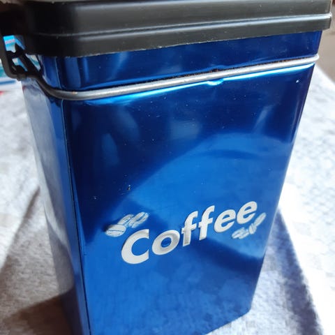Pieni pyöreä peltinen kahvipurkki