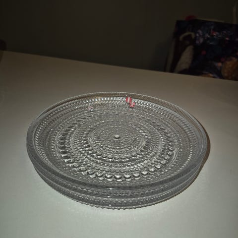 Iittala Kastehelmi lautanen turkoosia lasia. Lautasessa on Kastehelmi-sarjalle tyypillinen kohokuvioitu pintastruktuuri. Soveltuu esimerkiksi kattaukseen ruokalautasena tai tarjoilulautasena. Materiaali on värjättyä lasia, joka on helppo puhdistaa käsin tai koneessa valmistajan ohjeiden mukaan. Hp /tarjoa 30e