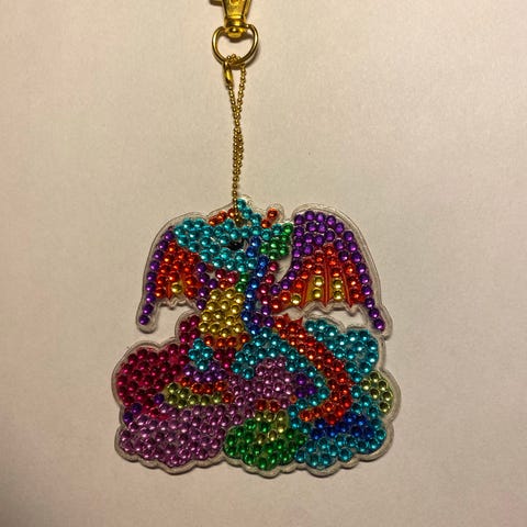 Monivärinen lohikäärme-avaimenperä helmi- ja ketjuyksityiskohdilla