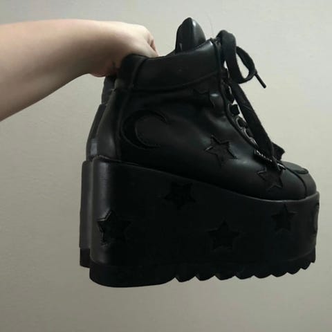 Pleaserin platform korkkarit joissa jonkin verran kulumaa näkyvät kuvissa. Olleet tankotanssi käytössä.