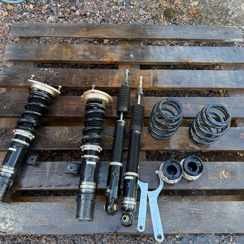 Hyväkuntoinen Bc:n alustasarja. Juuri purettu kaikki ylä- ja alapäät auki, kierteet putsattu ja varmistettu säätöjen toimivuus.