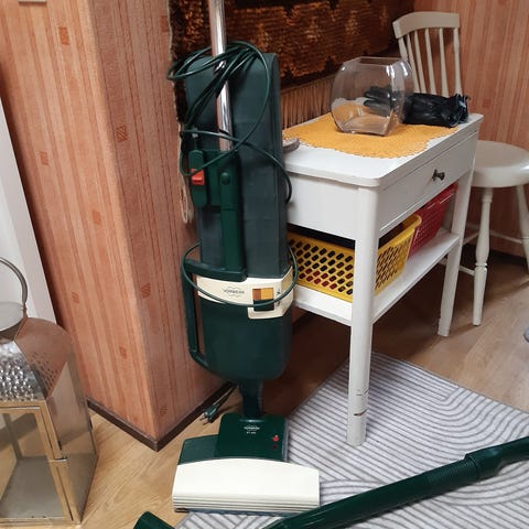 Kuvanmukainen punainen Bosch imuri, toimii hyvin, tehokas, käytön jälkiä on kotelossa ja muoveissa.