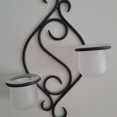 Peilillä varustettu seinälampetti. Kolmelle tuikulle paikat