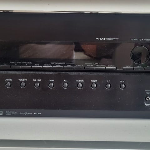 - Ulostulot: 6.35mm kuulokelähtö (etupaneeli), 1 kaiutin-preout (Front L/R), 2 x subwoofer-pre-out, Zone 2/Zone B (RCA linjatasoiset lähdöt),