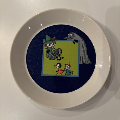 Ehjä muumilautanen. Hieman kulumaa lasituksessa pesukoneen jäljiltä. Katso myös muut Muumi-ilmoitukseni.