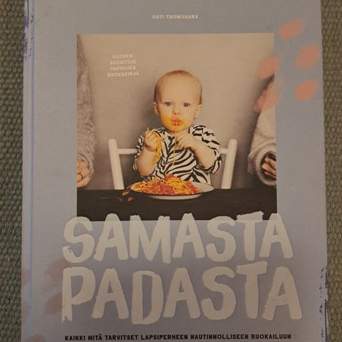 Myydään uudenveroinen kirja Samasta Padasta, eka ruokakirja". Läpi plärätty, mutta muuten ei tullut käyttöön. Takakannessa joku haalea läiskä (näkyy kuvassa).