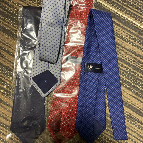 Miesten solmiot, useita eri värejä ja kuoseja. Kuvissa näkyy muun muassa raidallisia, pilkullisia, yksivärisiä ja erikuosisia solmioita. Sopivat käytettäväksi arki- ja juhlapukeutumisessa. Materiaali ei tarkemmin tiedossa, mutta solmiot ovat perinteisen mallisia ja -levyisiä kaulaan solmittavia solmioita.