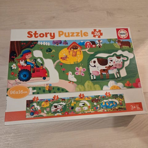 Suuri palapelikirja maatila on lastenkirja, jossa on neljä erillistä 24 palan palapeliä. Kirjassa on värikkäitä maatilateemaisia kuvituksia, kuten lehmiä, hevosia, kanoja ja muita maatilan eläimiä. Sivuille on painettu lyhyitä tarinoita ja tekstejä, ja palapelit muodostavat kokonaisia kuvia kirjan sivuille. Tuote sopii lapsille, jotka harjoittelevat palapelien kokoamista ja tutustuvat maatilan eläimiin kuvien ja tekstien avulla.