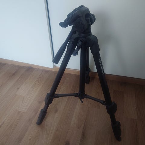 Kuvien mukaiset käytetyt Benron kolmijalka sekä Beiken kuulapää. Kauppaan lisäksi jääpiikit ja kuljetuspussukka. Kolmijalasta puuttuu yksi kiinnitysruuvi. Se ei ole vaikuttanut käyttöön.