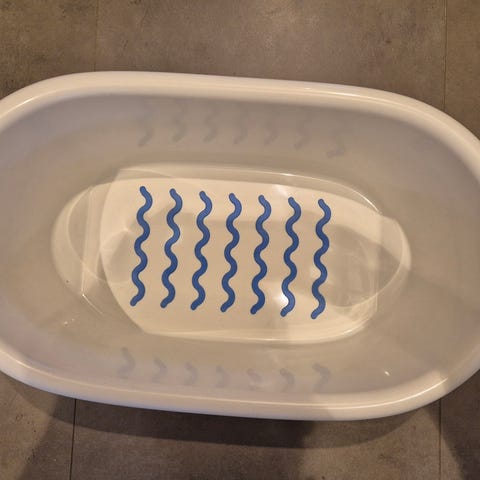 Valkoinen muovinen vauvan kylpyamme