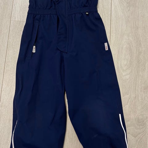 Reimatec mustat välikausihousut. Koko 104. Tukeva vedenpitävä pintamateriaali ja ohut kangasvuori. Joustavat säädettävät olkaimet. Joustava vyötärö.