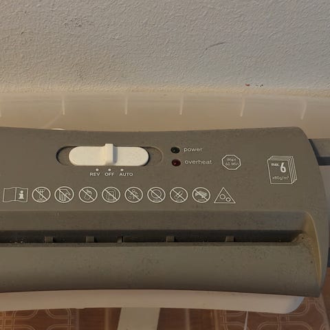 Musta paperisilppuri koti- tai toimistokäyttöön. Laitteessa on yläosassa ohjauspaneeli, jossa on virtakytkin ja valitsin eri toiminnoille, kuten automaattinen ja peruutus. Paperit syötetään kapeasta aukosta laitteen yläosassa. Alla on irrotettava säiliö silputulle paperille. Soveltuu asiakirjojen ja muun paperimateriaalin silppuamiseen tietoturvan parantamiseksi ja paperijätteen pienentämiseksi.