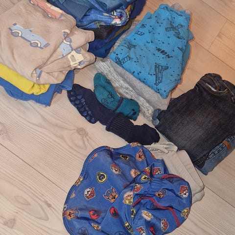 Farkut, shortsit, 6 T-paitaa ja 1 paita. Vastaavat kaikki kokoa 98. Myydään yhdessä, 15e postit lisätään.