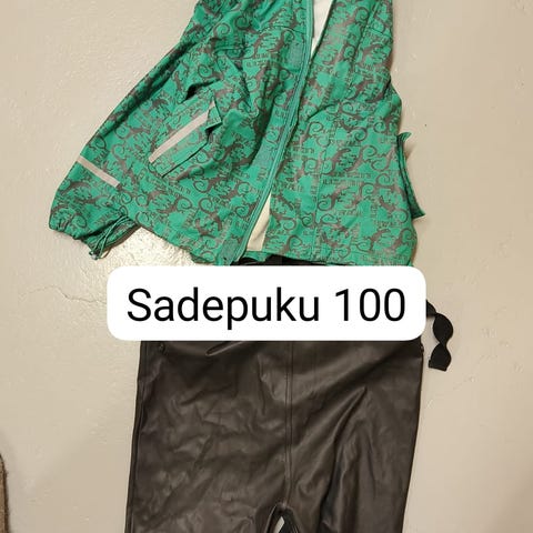 Uudenveroinen sadeasu, ainoastaan jalkalenkeissä näkyy käytön jälki. Merkkinä mikk-line. 15e, postit lisätään.