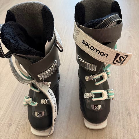 Salomon laskettelumonot koossa 24.5. Väriltään mustat. Monossa on kaksi säädettävää solkea ja takana kantahihna helpottamassa pukemista ja kantamista. Sisäkenkä on pehmustettu ja fleecevuorattu tuomaan lisämukavuutta ja lämpöä. Soveltuvat lasketteluun henkilöille, joille koko 24–24.5 on sopiva.