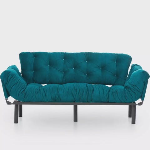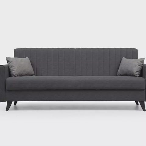 Esittelyssä 3-paikkainen vuodesohva, joka on täydellinen lisä asuintilaasi. Tyylikkään ja modernin muotoilunsa ansiosta tämä sohvasänky tarjoaa mukavuutta, mutta tuo myös ripauksen hienostuneisuutta kotiisi. Osaamaton mukavuus ja kestävyys100 %:sta metallirungosta ja pehmeästä kankaasta valmistettu sohvasänky takaa kestävyyden ja pitkäaikaisen mukavuuden. Tyynyjen 400 gr/m² silikonikuitutäyte takaa muhkean ja kodikkaan istuskelukokemuksen.Monipuolinen ja käytännöllinenMuunna olohuoneesi vierashuoneeksi muutamassa sekunnissa helppokäyttöisen vuodesohva-ominaisuuden avulla. Sängyn koko 200 cm leveä ja 130 cm syvä tarjoaa runsaasti tilaa mukaville yöunille. Helppo huoltaaSano hyvästit puhdistamiseen liittyvälle vaivalle helposti puhdistettavalla kankaallamme. Pyyhi vain mahdolliset roiskeet tai tahrat pois, ja sohvasänkysi näyttää yhtä hyvältä kuin uusi. Tyylikäs ja nykyaikainen muotoiluKiinteä harmaa väri ja moderni uutuusmuotoilu tekevät tästä sohvasängystä statement-kappaleen mihin tahansa huoneeseen. Sen skandinaavisesti inspiroima konsepti tuo ripauksen eleganssia ja hienostuneisuutta olohuoneeseesi. Tekniset yksityiskohdat:Runko: Jalusta: 100 % metallia kestävyyden takaamiseksiKangas: Kangas: 100 % pehmeä kangas mukavuutta vartenLeveys: 200 cm, korkeus: 95 cm, syvyys: 105 cm.Istuimen syvyys: 65 cm, istuimen leveys: 190 cm, istuimen korkeus: 42 cm.Sängyn koko: Leveys: 200 cm, Syvyys: 130 cm.Tyyny (2 kpl) 400 gr/m² silikonikuitutäytteellä.Helposti puhdistettava kangas vaivatonta huoltoa vartenMaksimipainokapasiteetti: 300 kgVäri: HarmaaPäivitä kotisi 3-paikkaisella vuodesohvalla jo tänään ja koe täydellinen yhdistelmä mukavuutta, tyyliä ja toiminnallisuutta.