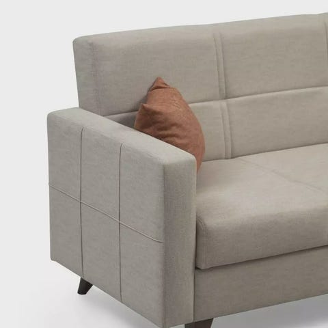 3-istuttava vuodesohva, harmaa, 200 cm leveä, kestävä, helppohoitoinen