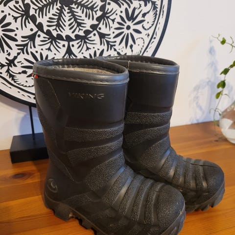 Vuorelliset kumisaappaat loskakeleille. Meillä pitänyt hyvin vettä, mutta näille tyypilliseen tapaan vuoressa kulumaa ja ei ole pesty eli hiekkalikaa on.