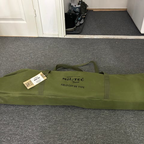 Pituus 190cm, leveys 63cm, päätyjen alumiiniprofiilit 73 cm. Alumiiniprofiilista tehty, eli suht kevyt, painoa semmoset 5-7kg. Taittuu nätisti kasaan ja mukana tulee sängylle pussi.