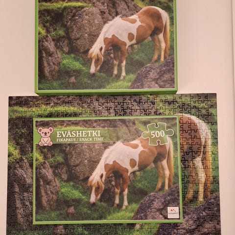 1000 palan hevospalapeli, kierrosta. Kaikki palat tallella, mutta ei sisällä kristalleja, joita kai alunperin ollut paketissa.