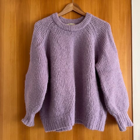 Marimekon kaunis, lämmin ja pehmeä Kinos villapaita. 44% alpakka, 31% polyamidi, 15% villa, 10% viskoosi. Tämä on kuin halaus päällä. Kaunis laventelin värinen paita, jossa pitkä resori hihassa ja helmassa. Koko m, reilu. Kai-kai 62cm, olka-helma 65cm. Ihana pörröinen paita. Hihoissa väri aavistuksen kulunut. Siisti kunto.