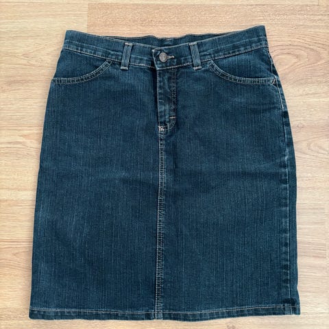 Nyt on tyyliä. Siisti ja hyvin istuva farkkuhame, jossa kiva pesu ja klassinen nappikiinnitys edessä.