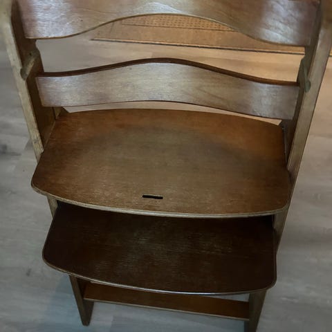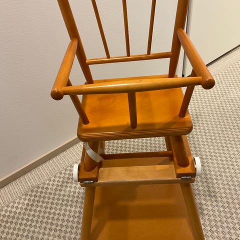 Vintage lasten syöttötuoli, jostain 50 luvun jälkeen ajoilta. Itsekin tässä istunut 70 luvulla.