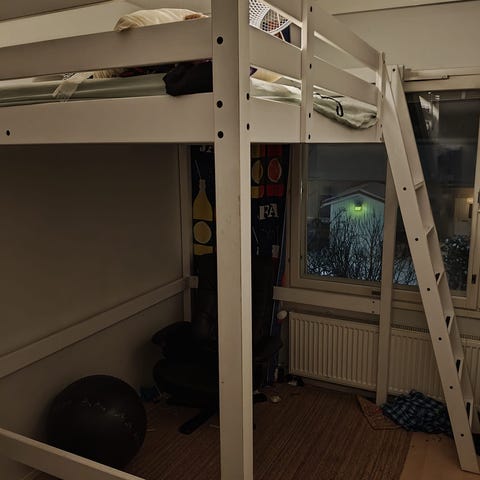 Elämää nähnyt, mutta ehjä sänky. Naarmuja löytyy. Maalaamalla saa uudenveroisen. Vielä meillä kasassa. Ostaja saa purkaa itse. Toki voidaan myös purkaa valmiiksi.