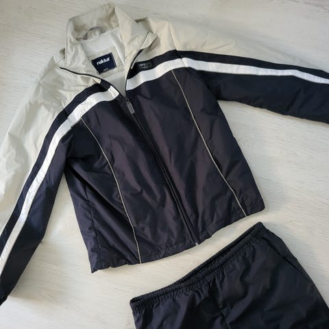 Tummanpunainen / tiilenpunainen Rukka-merkkinen tuulitakki ja samaa sarjaa tummansiniset 164 cm housut. Retro / vintage tyylisiä. Takki sopii S / M kokoiselle. Housujen punteissa vetoketjut ja vyötäröllä kiristysnaru. Takissa 3 vetoketjutaskua, alareunassa säädettävä kiristys, hiansuissa kiristykset. Vähän käytetty, hyväkuntoinen, huippulaadukas ulkoilupuku.