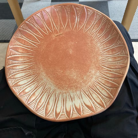 Suloinen pieni taidelautanen. Lautasen etupuolella on kaupunkimaisemaa esittävä koristekuvio, takapuolella valmistajan ja suunnittelijan merkinnät. Sopii esimerkiksi tarjoiluun tai koristekäyttöön keittiössä tai kattauksessa.