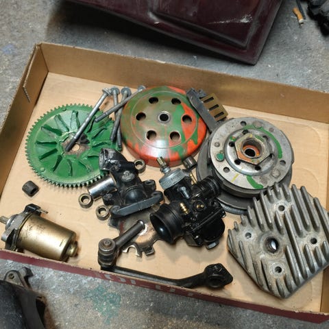 Mopon ja trimmerin osia. Hinnat alkaen 5€