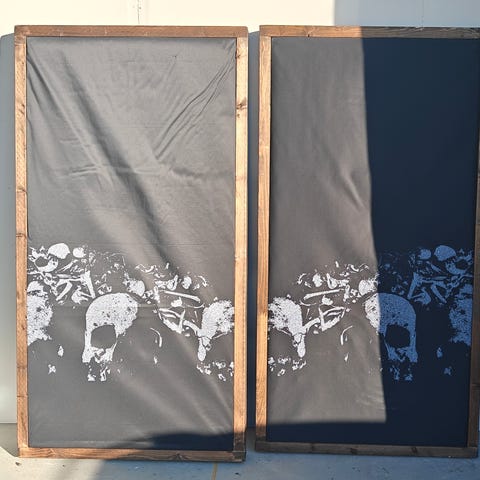 Renkailla liikuteltava tehokas akustointiseinä. Hieman do it yourself -henkinen, mutta toiminnallisesti erittäin pätevä, tukeva ja kätevä studioille.