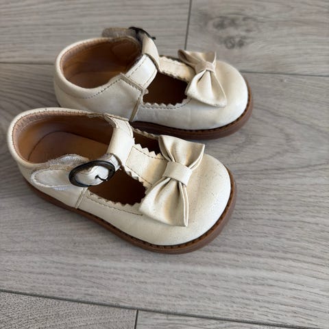 Hyväkuntoiset, mutta pesua kaipaavat kangassandaalit/ballerinat pikkuiselle kesään. Käsittääkseni suositusten mukaiset/pj-kengät. Matala malli, joten ei parhain selkeästi pulleaan jalkaan. Meidän pulleahkojalkaisella menivät ilman pohjallista vielä loppukesästä.