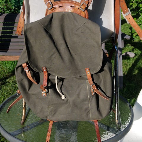 Ihan siisti kuntoinen ja ehjä reppu.olisko jopa -80 luvulta,mutta ihan laatu merkki ja varmasti erottuu poluilla massasta .