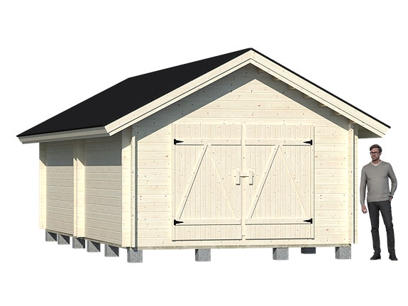 Perinneladot autotalli 28m2 umpiseinällä. Salvosnurkkainen malli.