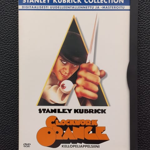Muoveissa oleva Stanley Kubrickin Kellopeliappelsiini dvd.