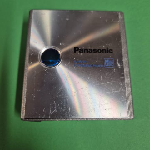 Pieni kevyt minidisc soitin. Kaukoohjain kaapelissa jossa miniplugi kuulokeliitäntä.