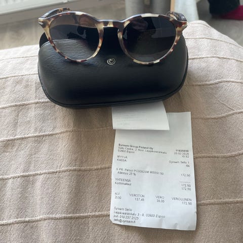 Myydään erittäin hyväkuntoiset Persol 9649-S aurinkolasit vihreillä kehyksillä. Vähän käytetyt – ei naarmuja eikä kulumisen jälkiä. Linssit puhtaat ja kehykset erinomaisessa kunnossa.
