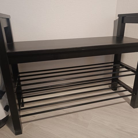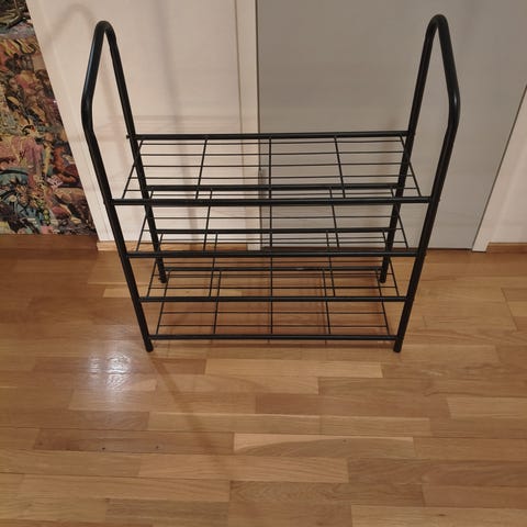 Hyväkuntoinen tukeva kenkäteline. Noin 90cm levee ja 35 syvä.