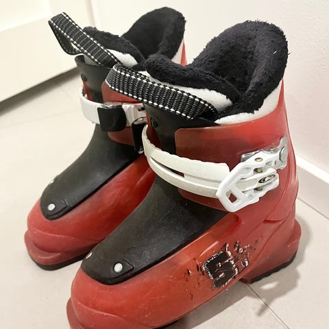 Lasten laskettelumonot, vastaa noin kenkäkokoa 28. Väri puna/valkoinen.