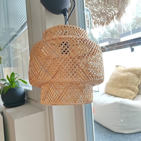 Kaunis ja kevyt ilme, sopii hyvin esim. olohuoneeseen, makuuhuoneeseen tai ruokapöydän ylle. Bambuyksityiskohdat tuovat lämpöä sisustukseen.